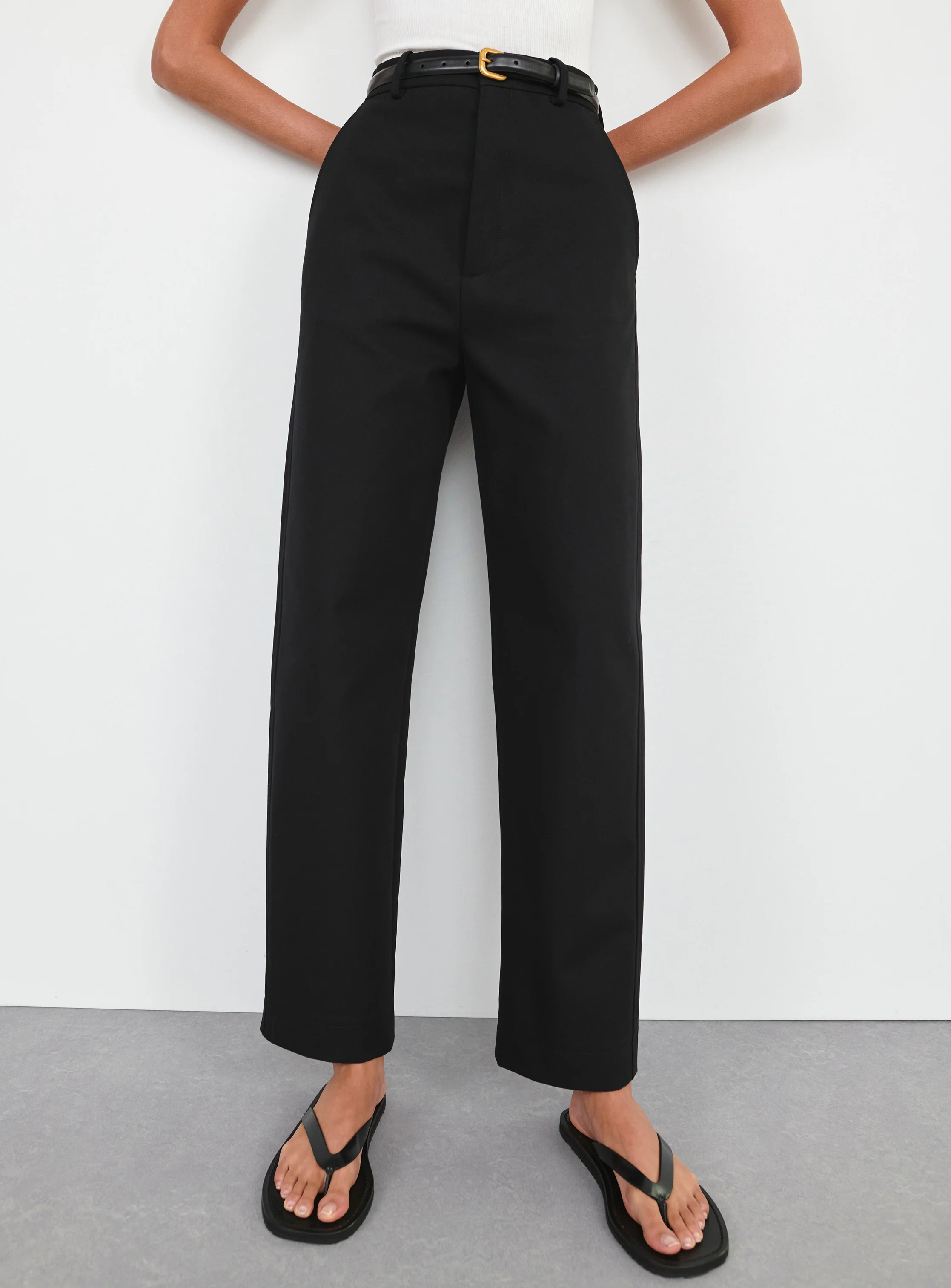 - A classic straight-leg trouser, designed with a timeless silhouette and clean lines. Cut in a superior Italian double twill cotton. Functional details include belt loops, side slit pockets, discreet back welt pockets and button fly construction.Â