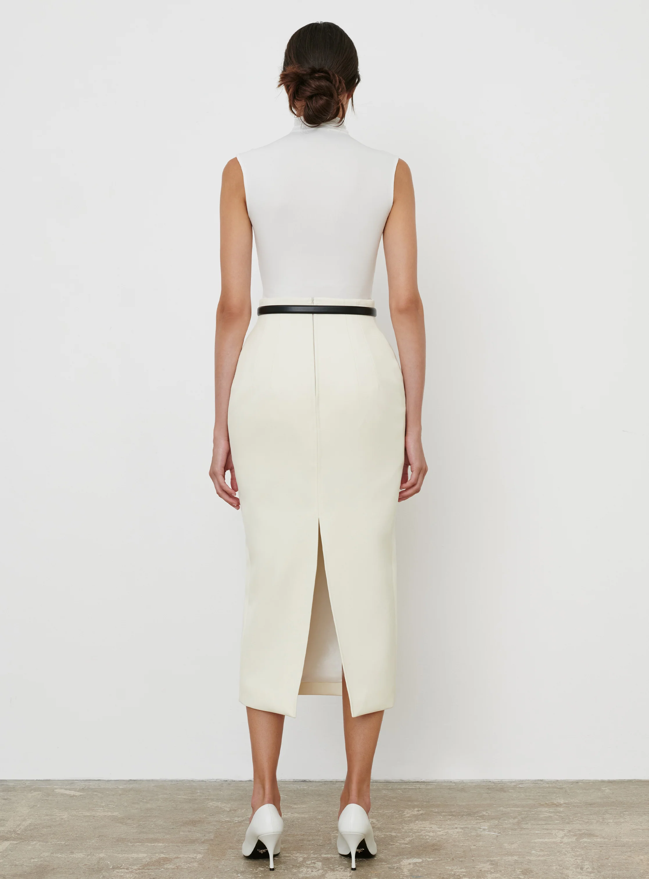 - The RHW Sculpted Skirt introduces a pronounced, and elegant form to enhance the wearerโs natural shape. Crafted in a technical Italian wool blend, the Skirt is elongating with precisely engineered darts, and a back vent for movement. Style with the RHW Short Sleeve Bodysuit and RHW Sweater. Available in Midi or Mini Lengths.